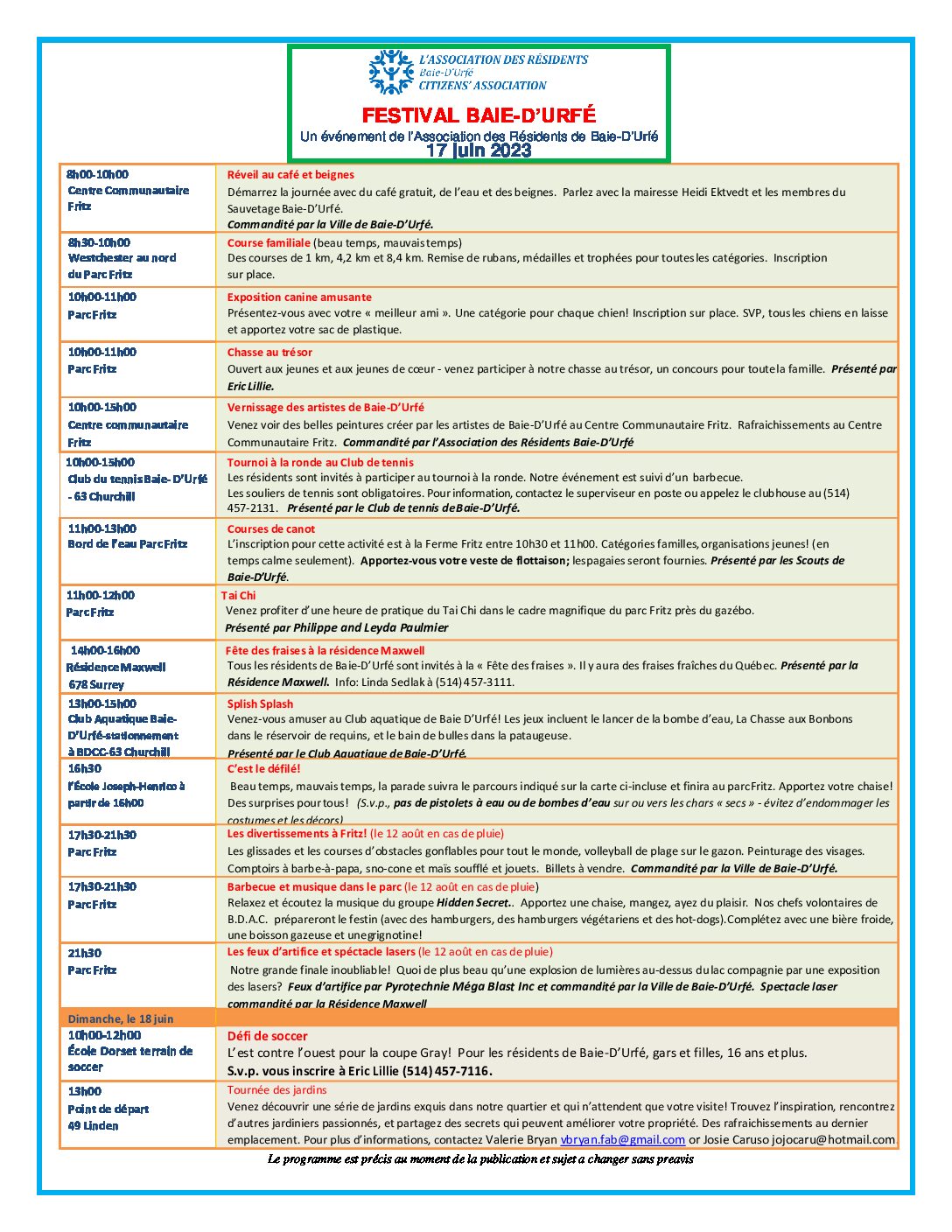 Festivale Baie-D’Urfé June 17 juin