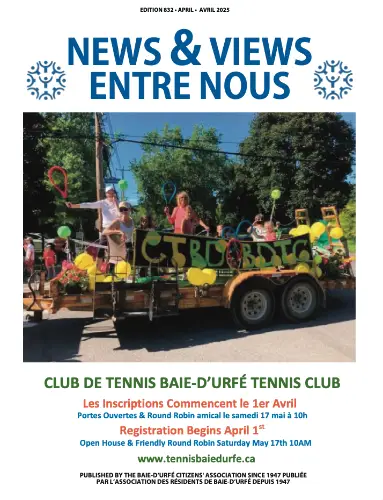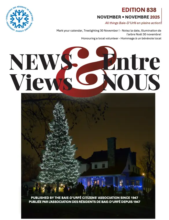The News & Views is the official publication of the Baie-D’Urfé Citizens’ Association. It is delivered 10 months a year, to all member house-holds in Baie-D’Urfe except for the months of January and August.